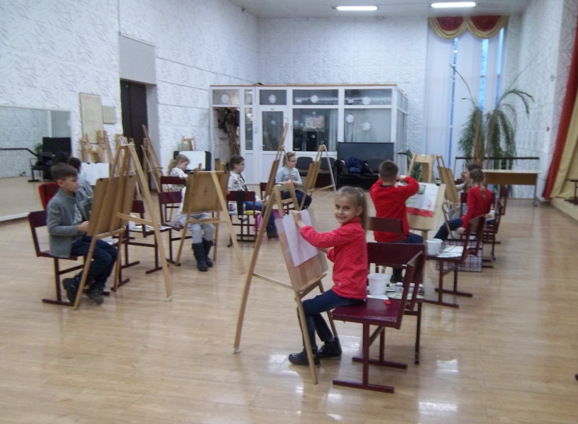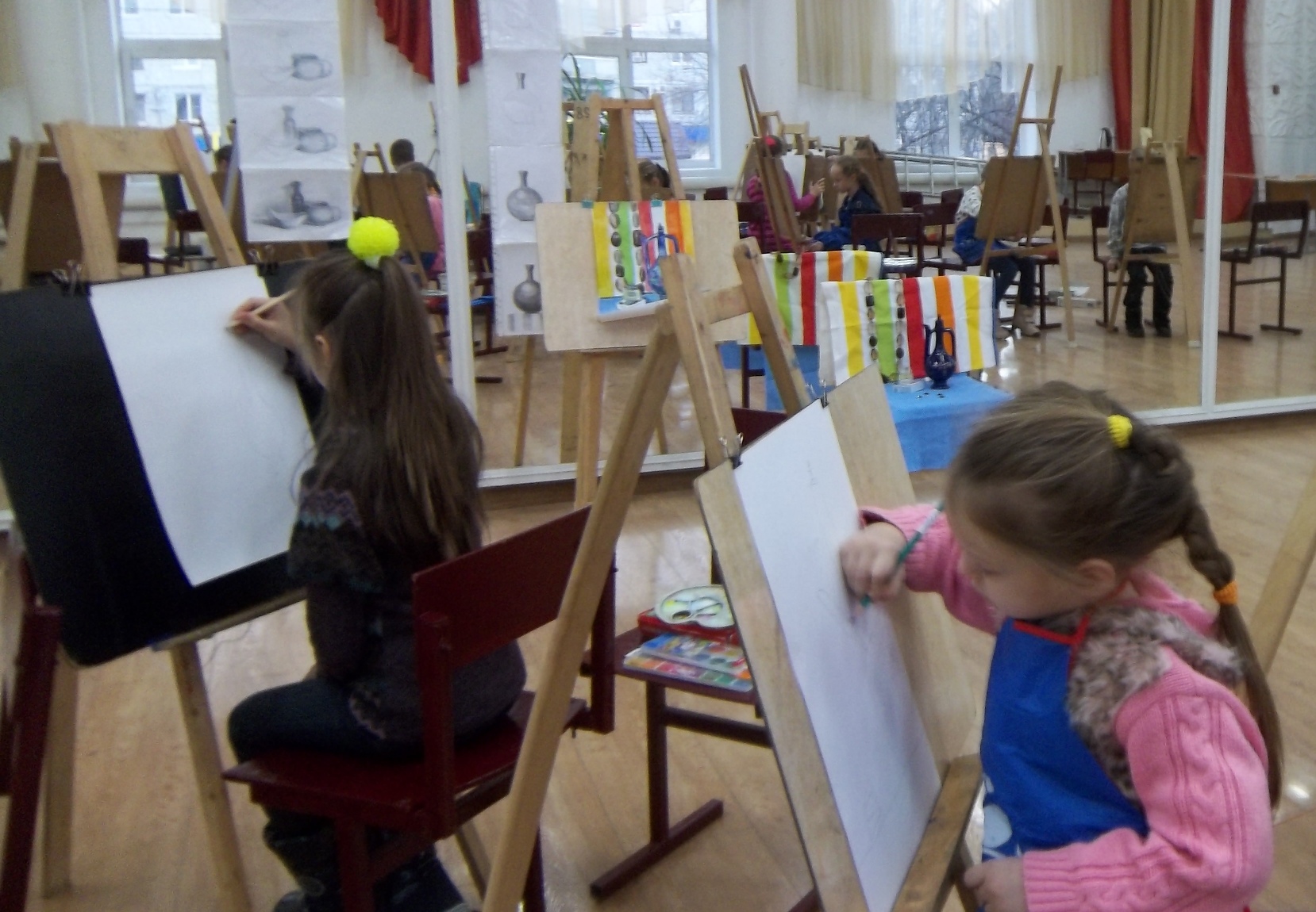 Обучение живописи,рисунку, композиции по академической программе. Развитие творческих способностей и индивидуальности. Студия работает с 2011 года. Занимаются в студии дети с 7-8 лет, подростки до 18 лет и взрослые. Периодически набирается группа по изучению и освоению техники "Батик" . Оснащена всем необходимым оборудованием, прекрасным натюрмортным фондом и методических материалов.